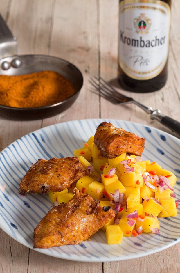 Steinbeißer „Cajun“ mit Mango-Salsa