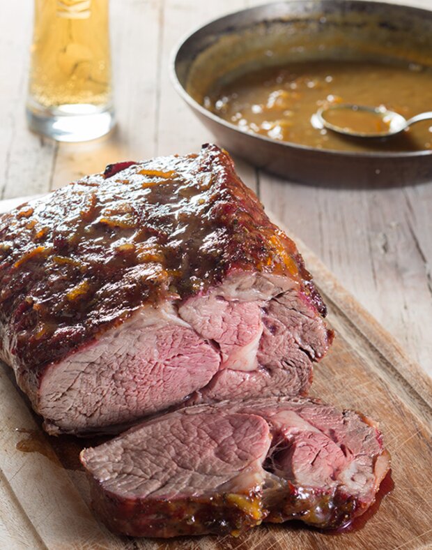 Das Fleisch aus dem Beutel nehmen, die Marinade aufbewahren. Etwas einölen, mit Pfeffer und Salz würzen und bei 160 °C ca. 1 ½ Stunden indirekt grillen. Inzwischen die aufbewahrte Marinade einkochen, bis sie dicklich wird und das Fleisch vor Ende der Garzeit damit bestreichen.