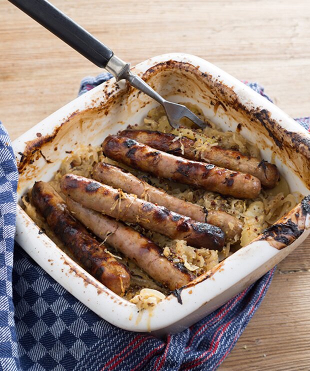 Bier-Bad-Bratwurst mit Apfelsauerkraut