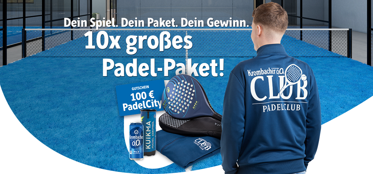 Mach mit beim Krombacher o,0% Gewinnspiel und sichere dir mit etwas Glück dein eigenes Padel-Equipment.
