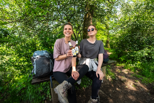 Hoffentlich verfluchst du uns nicht! Der Anstieg zum Gipfel Löwenburg auf 455 Meter hat uns schon sehr schnaufen lassen, aber schließlich sind auch 391 Höhenmeter bis zum verdienten Gipfel-Pils zu meistern. Die Flasche Krombacher schmeckt am besten an der Burgruine Löwenburg mit einer herrlichen Aussicht auf den Rhein. Dieser Ort hat tatsächlich etwas Magisches und wir hätten dort Stunden verweilen können. Die Gesamtlänge der Tour beträgt übrigens 9,6 Kilometer. So bleibt genug Zeit für die ein oder andere Pause.