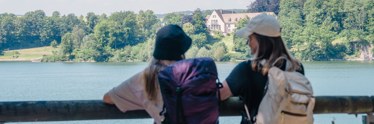 Als Nächstes steht eine traumhafte Wanderung rund um den Hennesee auf unserem Plan. Wir starten direkt in der Stadtmitte von Meschede und sind ruckzuck im Grünen. Die Strecke von etwa 8 Kilometern mit 180 Höhenmetern verläuft teils oberhalb und teils direkt am See entlang. Wir haben die Tour so geplant, dass sie auch an heißen Sommertagen angenehm machbar ist – einen kleinen Anstieg haben wir aber trotzdem eingebaut ;) Dafür wirst du mit einem traumhaften Blick von oben auf den glitzernden Hennesee und die umliegende Natur