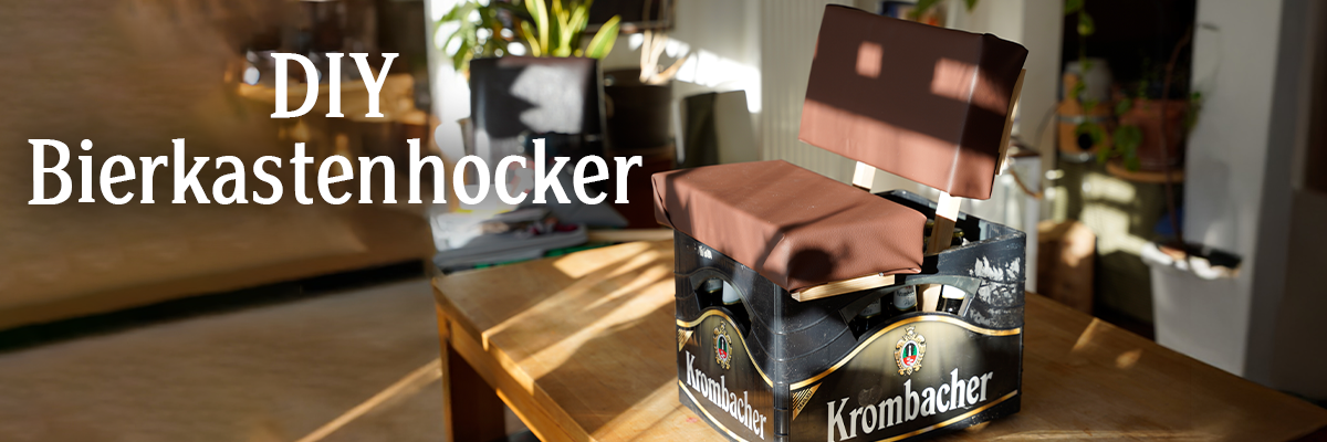 Robust, gemütlich und überraschend vielseitig: Der DIY Bierkastenhocker ist Sitzmöbel und Statement zugleich. Mit wenigen Materialien entsteht ein Hocker, der perfekt auf einen Bierkasten passt und sich im Handumdrehen zur Sitzbank mit Rückenlehne erweitern lässt. Und weil gutes Design gutes Bier verdient, passt ein Krombacher-Kasten hier nicht nur maßlich, sondern auch stilistisch perfekt!