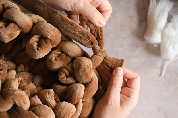 Alle Fadenenden im Inneren der Tasche fest verknoten und die überstehenden Reste in die Maschen einweben. So bleibt alles unsichtbar und stabil.