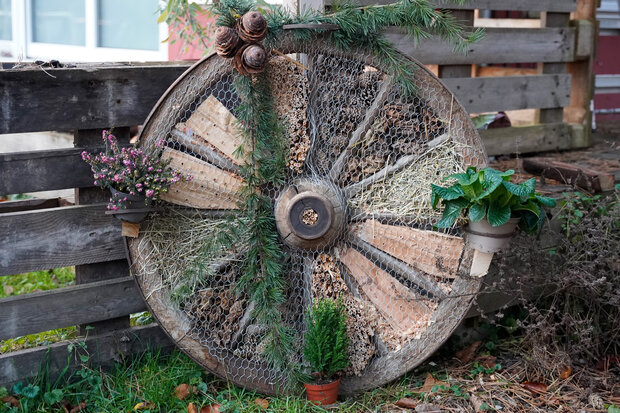 Sorge dafür, dass das Insektenhotel ganzjährig geschützt bleibt.