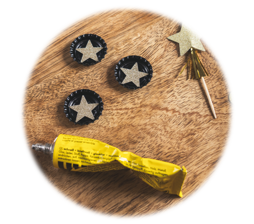 Wir lieben es, mit Freunden und Familie zusammenzukommen und eine schöne Zeit zu verbringen. Doch wer kennt es nicht, je mehr Besuch da ist, desto schwieriger wird es, das eigene Glas nicht aus den Augen zu verlieren. Genau dafür haben wir uns eine einfache Idee überlegt, die du mit unseren Krombacher Kronkorken basteln kannst. Glasmarkierer ist hier das Stichwort. Sie sind eine clevere Möglichkeit, dass jeder sein Glas ohne Probleme wiederfindet und gleichzeitig eine tolle Partydekoration. Mit der nachfolgenden Anleitung kannst du deine ganz eigenen Glasmarkierer selber machen und bist für die nächste Party gewappnet, egal ob Silvester, Geburtstag oder Weihnachten.