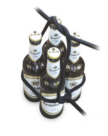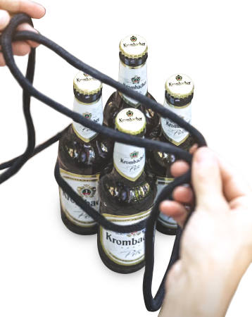Lege die Schlaufe verteilt über die Flaschen drüber.