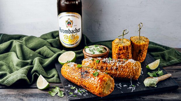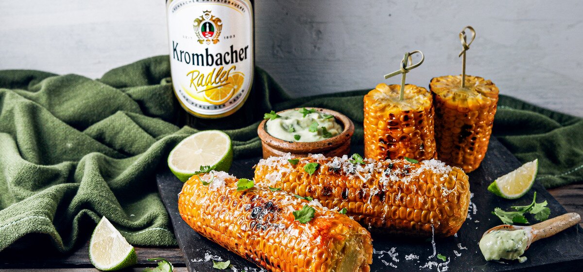 Gegrillter Mais ist inzwischen ein Klassiker unter den vegetarischen Beilagen und gehört bei einem gemütlichen BBQ einfach dazu. Wer es etwas schärfer mag, kann etwas Chilisoße für die pikante Note ergänzen. Dazu ein frischer Dip und ein kühles Krombacher Radler und der sommerliche Genuss ist perfekt. Probiert es aus!