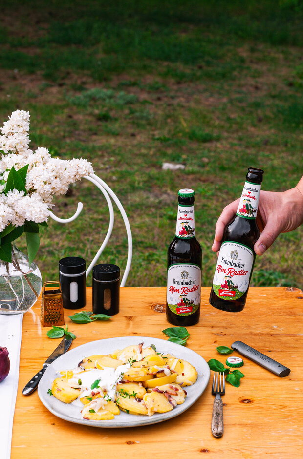 Einen Klecks Crème Fraîche auf die heißen Bratkartoffeln geben oder separat dazu servieren.
