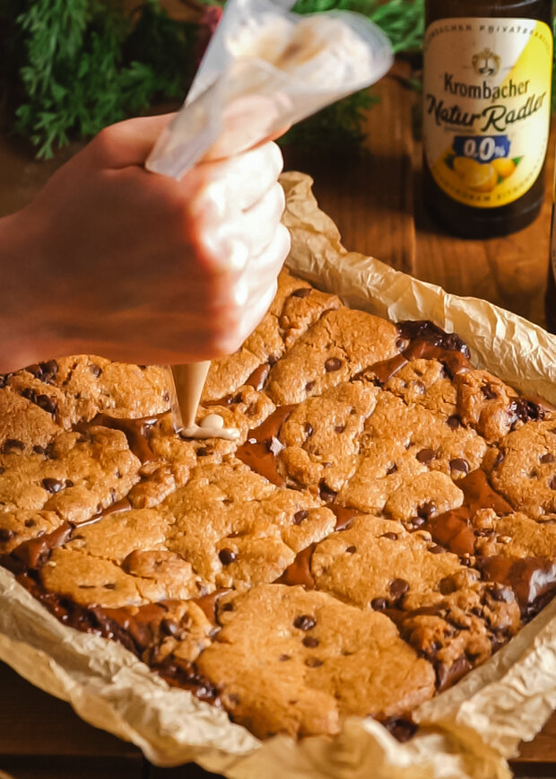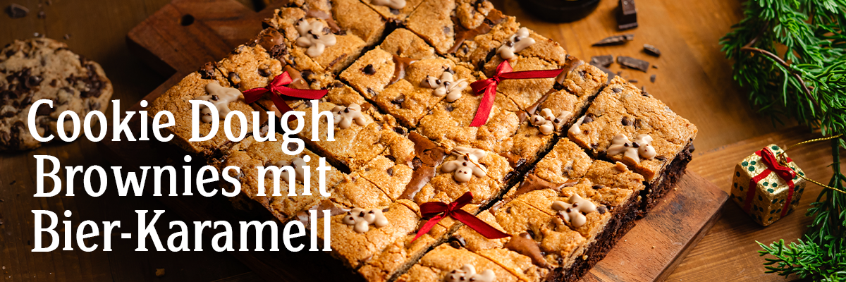 Cookie Dough Brownies mit Bier-Karamell