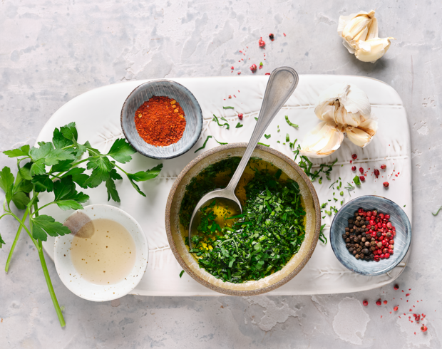 Zuerst beginnen wir mit dem Chimichurri. Hier müssen alle Zutaten bereit gestellt werden.