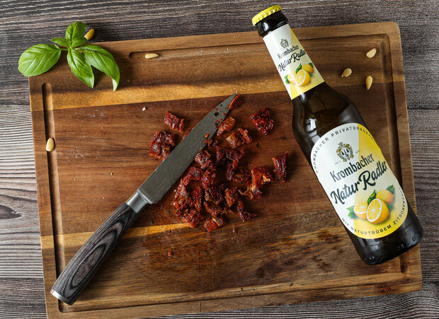 Diese aromatische Tomaten-Kräuterbutter eignet sich hervorragend als Aufstrich oder zum Verfeinern von Gerichten. Sie passt besonders gut zu frischem Brot oder als Beilage zu Gegrilltem. Am besten schmeckt sie mit einem kühlen Krombacher NaturRadler.
