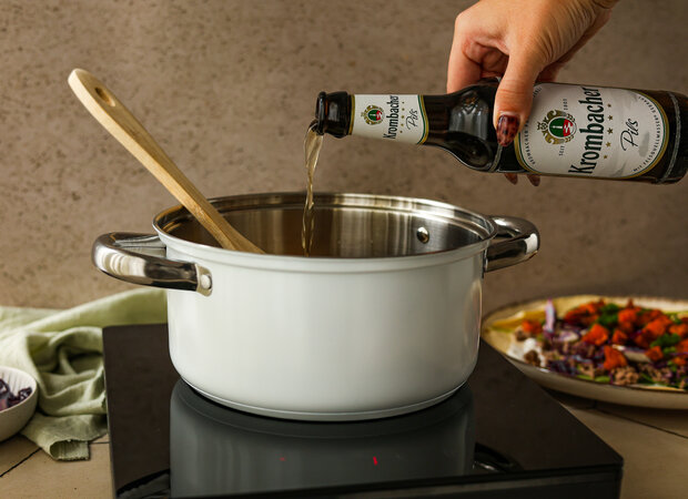 Das Highlight bildet eine cremige Erdnuss-Bier-Sauce, die mit Kokosmilch und gerösteten Zwiebeln für Tiefe und Wärme sorgt. Ein sättigendes, aromatisches Gericht, das perfekt in die kalte Jahreszeit passt und gemütliche Abende noch ein Stück besser macht.