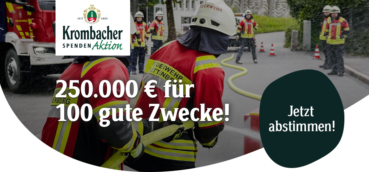Wir bedanken uns für die zahlreichen und vielfältigen Vorschläge zur diesjährigen Krombacher Spendenaktion. Bis zum 16.11 kannst du jetzt abstimmen!