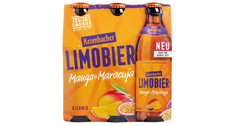 Neu und nur für kurze Zeit: Krombacher Limobier Mango-Maracuja