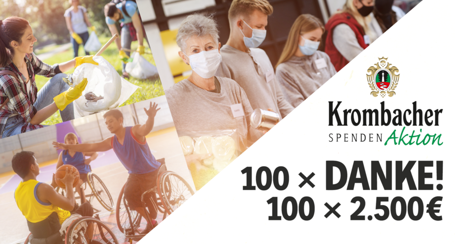 Die Krombacher Spendenaktion findet seit 2003 jedes Jahr statt und ist seitdem ein fester Bestandteil der Krombacher Nachhaltigkeitsphilosophie geworden. Bis heute wurden rund 1.700 gemeinnützige Institutionen, Organisationen und Vereine, die sich in besonderer Form um Kinder, Menschen mit Behinderung, Notleidende, Tiere oder andere wichtige soziale Anliegen kümmern, mit einer Gesamtsumme von über vier Mio. Euro unterstützt. Weitere Informationen zur Spendenaktion der Krombacher Brauerei gibt es unter https://nachhaltigkeit.krombacher.de/gesellschaft.
