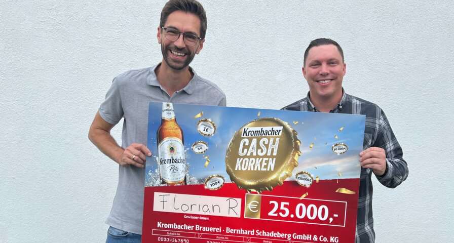 Gleich zwei Gründe zur Freude: Florian R. aus Lüdinghausen feierte kürzlich seinen 40. Geburtstag und hat passend dazu 25.000 Euro bei der Krombacher Cash-Korken-Aktion gewonnen. Als er mit seinen engsten Freund:innen auf den runden Geburtstag anstieß, fand er unter dem Kronkorken seines Krombacher Pils den Gewinncode. In der wöchentlichen Sonderauslosung wurde sein Code gezogen: „Ich kann es ehrlich gesagt immer noch nicht glauben“, freut sich der glückliche Gewinner und erzählt, dass er als Wahl-Münsteraner treuer Krombacher-Fan geblieben ist. Von dem Geld möchte die vierköpfige Familie nächstes Jahr in den Sommerurlaub fahren und einen Teil in Haus und Garten investiert.