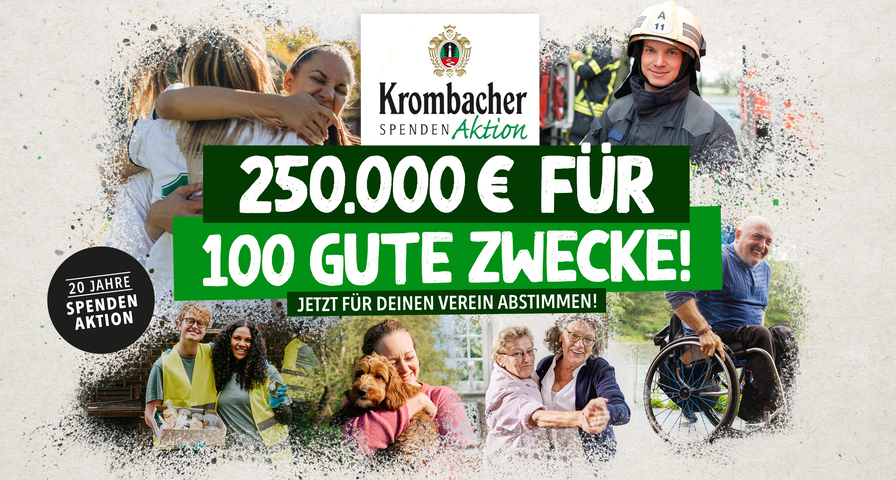 Seit 2003 stellt die Krombacher Brauerei jährlich eine Gesamtsumme von 250.000 Euro für gesellschaftliches Engagement zur Verfügung. Das Familienunternehmen hat im Dezember 2023 die Verbraucher:innen dazu aufgerufen, gemeinnützige Institutionen und Vereine vorzuschlagen, von denen 100 eine Spende in Höhe von je 2.500 Euro erhalten. Bisher fand die Auswahl dieser 100 Spenden durch ein internes Gremium statt, jetzt gibt es eine Neuerung: 50 Spenden werden durch ein Voting-Verfahren vergeben. Außerdem erhalten die Vereine auf den ersten drei Plätzen einen Bonus in Form von Freiware aus der Krombacher Produktpalette: 300 Liter für den ersten Platz, 200 Liter für den zweiten Platz und 100 Liter für den dritten Platz.