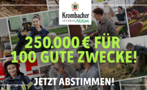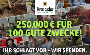 17.12.2024 Zurück zur Tradition: Berleburger Schützen und Krombacher Brauerei erneuern Partnerschaft Der Schützenverein Berleburg 1838 e.V. hat in seiner Suche nach einem neuen Bierpartner eine Entscheidung getroffen: Nach über zwei Jahrzehnten kehrt die Krombacher Brauerei zurück und wird ab 2025 offizieller Bierpartner der Berleburger Schützen. 03.12.2024 Anstoßen auf 770 gemeinsame Jahre: Krombacher ehrt langjährige Mitarbeitende 27.11.2024 Gemeinsam für den Wald: 100 Krombacher Mitarbeitende forsten Wald wieder auf Am vergangenen Wochenende trotzten rund 100 Mitarbeitende der Krombacher Brauerei dem Schneetreiben und haben sich gemeinsam mit ihren Familien und Freunden für den Wald engagiert. 20.11.2024 Strategische Investitionen in die Zukunft: Krombacher Brauerei modernisiert Abfüllung mit großangelegtem Umbau Die Krombacher Brauerei investiert in den kommenden sechs Jahren insgesamt über 100 Millionen Euro in den Umbau ihrer Abfüllung, um sich weiter zukunftsfähig aufzustellen. 14.11.2024 Abstimmungsphase der Krombacher Spendenaktion startet: 250.000 für 100 gute Zwecke Unter dem Motto „Gemeinsam Gutes Tun“ ist nun jede:r gefragt: Bis zum 28. November kann über die Website der Krombacher Brauerei für einen guten Zweck der Wahl abgestimmt werden. 30.10.2024 400.000 Bäume für den heimischen Wald – Krombacher Brauerei unterstützt Aufforstung und Schutz des Ökosystems in ihrer Heimatregion In den kommenden Monaten plant die Krombacher Brauerei u. a. zusammen mit dem Landesbetrieb Wald und Holz Nordrhein-Westfalen, knapp 400.000 neue Bäume auf einer Fläche von 220 Hektar in Nordrhein-Westfalen zu pflanzen – mit besonderem Fokus auf die Wälder im Sieger- und Sauerland. 14.10.2024 250.000 Euro für 100 gute Zwecke: Jetzt Vorschläge einreichen bei der Krombacher Spendenaktion Ab sofort können wieder Vorschläge bei der Krombacher Spendenaktion eingereicht werden, um gemeinnützige Organisationen und Vereine in Deutschland zu unterstützen.  30.09.2024 Krombacher’s Fassbrause Winterapfel kommt zurück: Der perfekte Begleiter für die kalte Jahreszeit Aufgrund der großen Nachfrage bringen wir unsere Krombacher´s Fassbrause Winteredition zurück. 11.09.2024 30.000 Euro für den guten Zweck: Krombacher spendet an Institutionen aus der Region Im Rahmen der Krombacher Spendenaktion gehen in diesem Jahr 30.000 Euro an Vereine und Institutionen in der Heimatregion der Brauerei. Im Oktober können wieder Vorschläge für die nächste Krombacher Spendenaktion eingereicht werden. 02.09.2024 Starke Partnerschaft: Krombacher und TuS Ferndorf verlängern vorzeitig Die Partnerschaft mit dem TuS Ferndorf zählt zu den ältesten sowie traditionsreichsten Sponsorings der Krombacher Brauerei – und sie wird fortgesetzt. Der bestehende Sponsoringvertrag wurde vorzeitig verlängert.